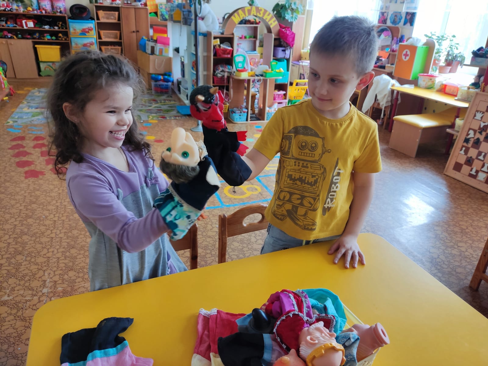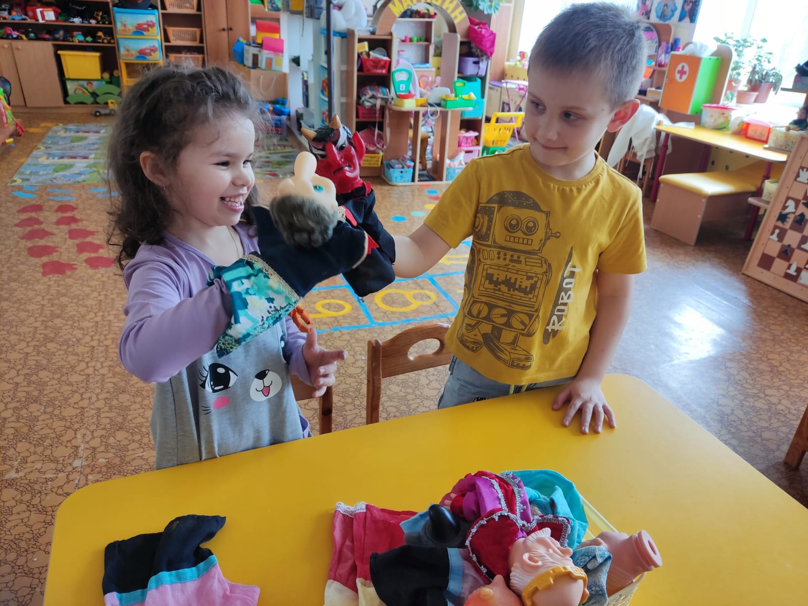 Этот день начался рассказом о театральных профессиях, ребята узнали, что театр - это не только сцена, но и закулисье, и над спектаклем работают не только актеры, но и режиссеры, сценаристы, костюмеры, декораторы. Дети отгадывали загадки о театре, о театральных профессиях, участвовали в театральных этюдах, а затем и сами побывали в роли артистов: показали нашим малышам спектакль "Заюшкина избушка". День театра в детском саду получился веселым, очень эмоциональным. Артистами быть понравилось каждому.
